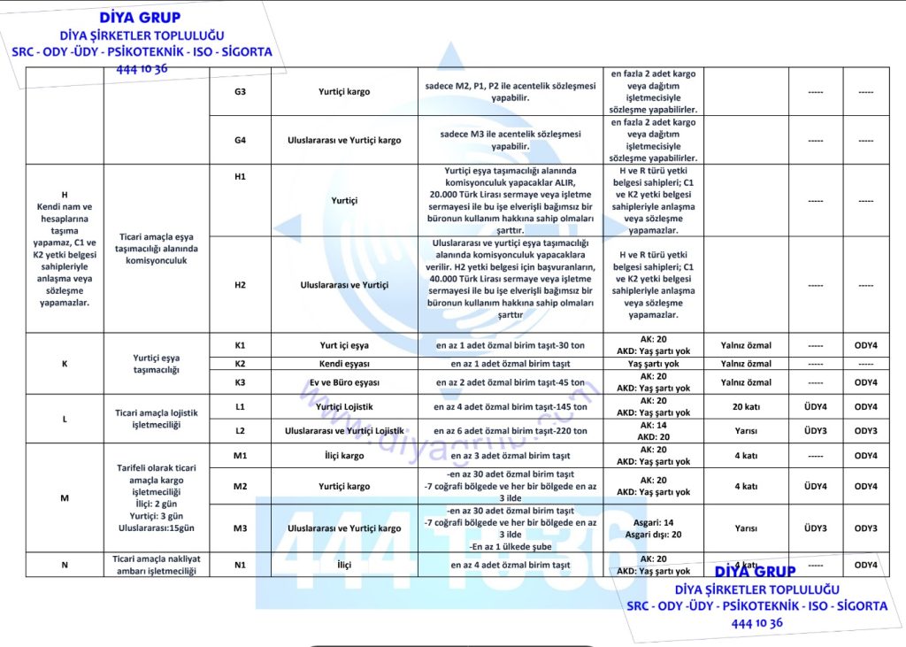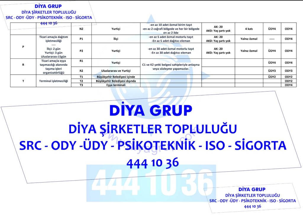 | SRC4 | ODY4 | ÜDY4 | YURTİÇİ YÜK – EŞYA-KARGO TAŞIMACILIĞI |
